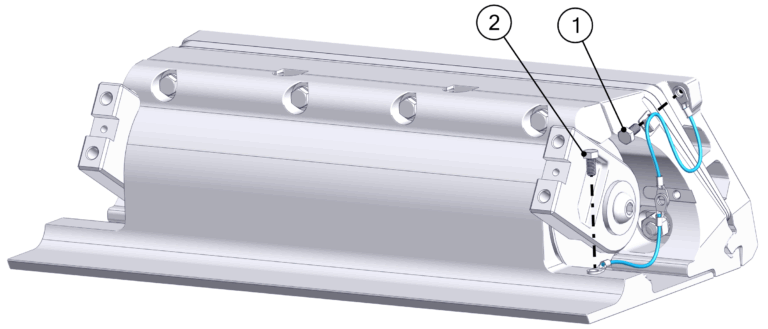 - Install the Blade Anode using two M5-0.8 x 20 mm Button Head Screws. Slide the other terminal end of the bonding wire over the right-hand side screw while inserting. (Figure 74 – Blade Anode Installation)