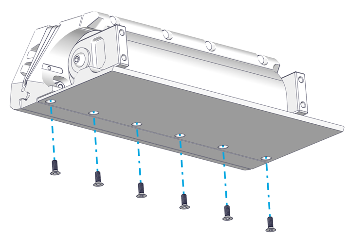 - Position the Seal Plate over the arms and Actuator and align the countersunk holes on the bottom surface.
