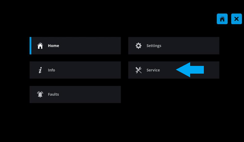 • Navigate to the top right and select the ‘Service Menu’ icon.
