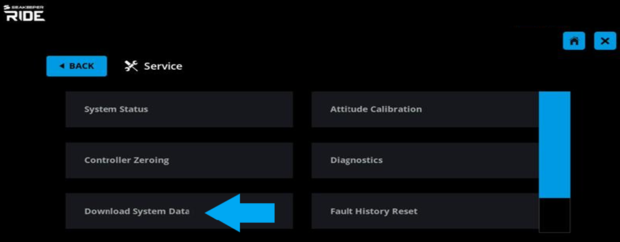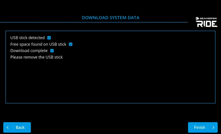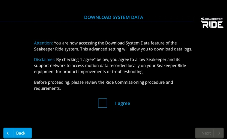 • Choose ‘Download System Data.’ This entry will inform the user that Seakeeper Ride is recording motion data from the boat and storing it.