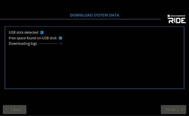 • Select which log you want to offload to the USB. Note: ‘All Logs’ or ‘Debug Logs’ will be used for troubleshooting and or all data pulled from the Software Module whereas ‘Sea Trial Logs’ will only pull Sea Trial data.