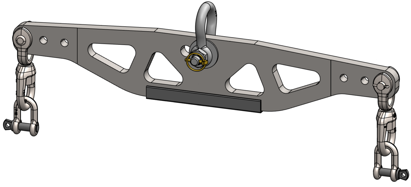 - Attach liftingr bar (P/N 81638) to the two lifting eyes located on the top of the Seakeeper enclosure. Stay clear of any other parts on the Seakeeper. See image below.
