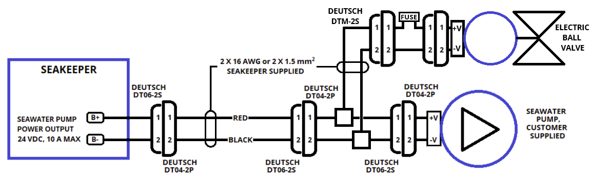 Connecting the DC Seawater pump in any other manner than recommended by Seakeeper may cause internal failure.
